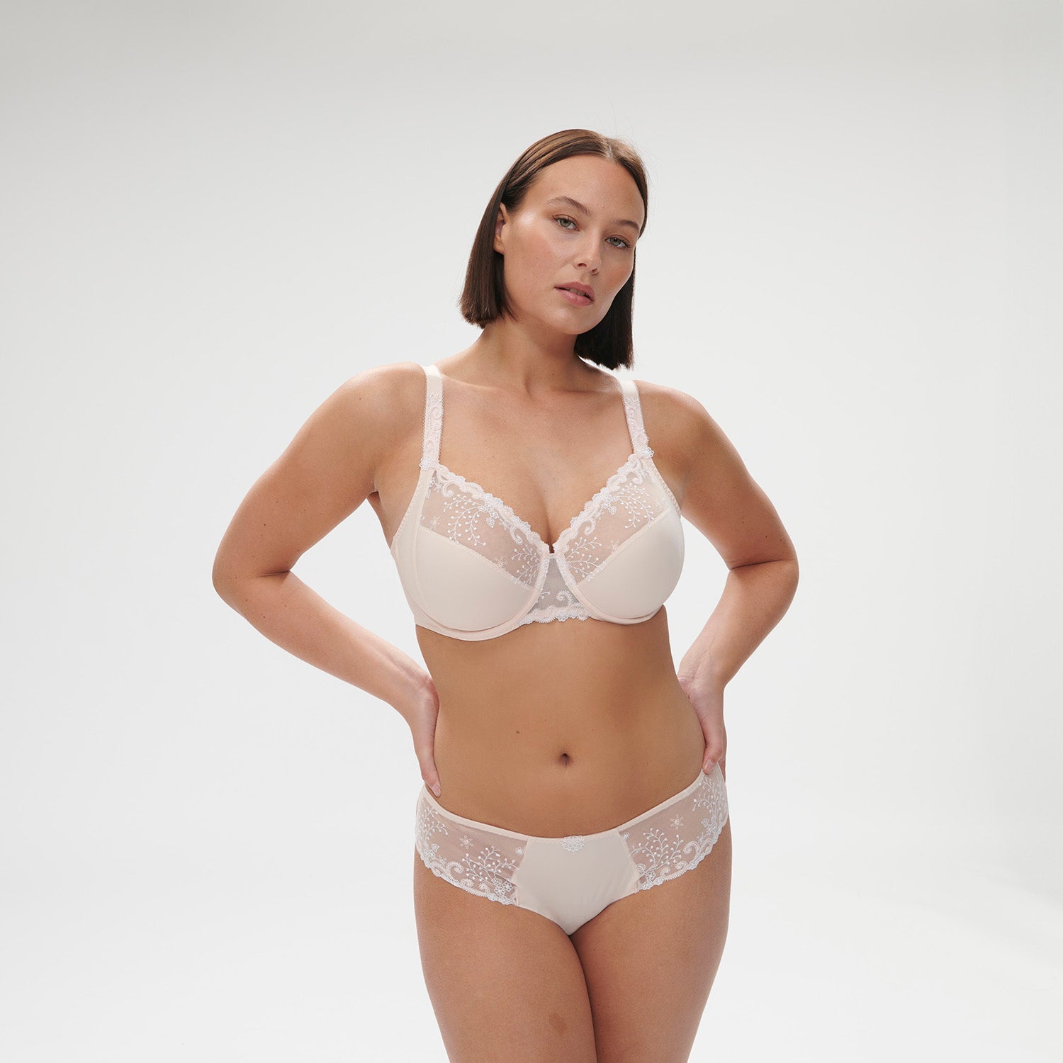 Beautiful and incredibly soft Full cup from the Delice collection. Supple microfiber fabric at bottom of cup and shear stitched lace on top. This fabulous French style is not only stunning, but also a fit you can feel confident in throughout everyday life.